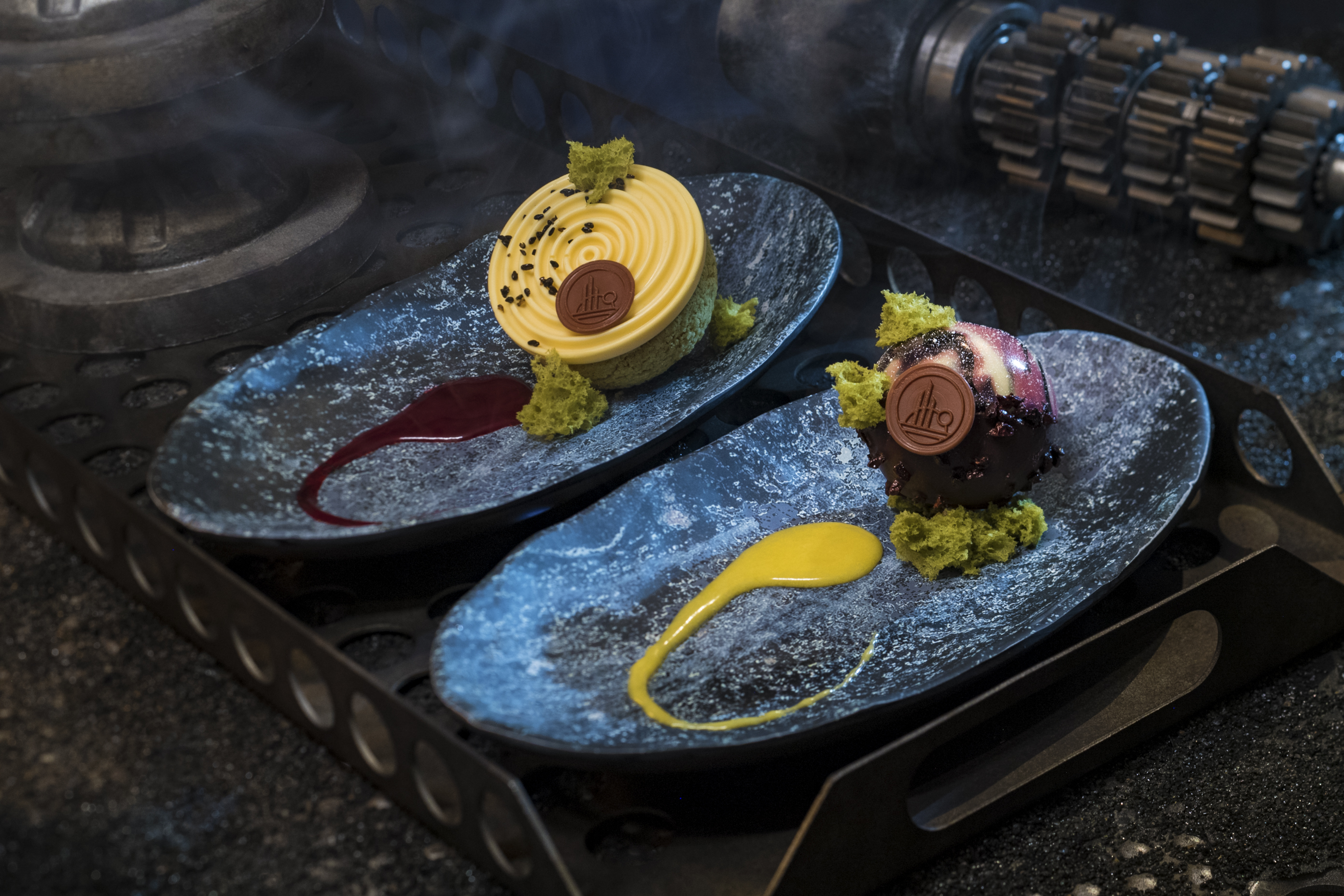 Innovative and creative eats from around the galaxy will be available at Star Wars: GalaxyÕs Edge when it opens May 31, 2019, at Disneyland Park in Anaheim, Calif., and Aug. 29, 2019, at Disney's Hollywood Studios in Lake Buena Vista, Fla. Guests can indulge in a raspberry crme puff with passion fruit mousse (left) or chocolate cake with white chocolate mouse and coffee custard (right) at Docking Bay 7 Food and Cargo inside Star Wars: GalaxyÕs Edge. (David Roark/Disney Parks)