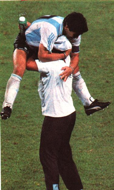 Todos el poder, desde el presidente de la FIFA Joao Havelange hasta el presidente de Italia, ministros, dirigentes y los principales empresarios de los sponsors del mundial, estaban ahí sentados en el palco de honor, perfumados y vestidos con sus trajes caros, corbatas de seda y zapatos de cuero cosidos a mano, sufriendo los treinta grados del calor italiano de julio y viendo en vivo y en directo como a pocos metros, el equipo de Maradona, los dejaba afuera del mundial. Y Diego festejaba feliz, frente a sus narices. Insolente. Los gozaba. Se reía, corría de un lado al otro de la cancha. Levantaba los brazos. Sabía que los humillaba y ellos sabían que estaban siendo humillados.