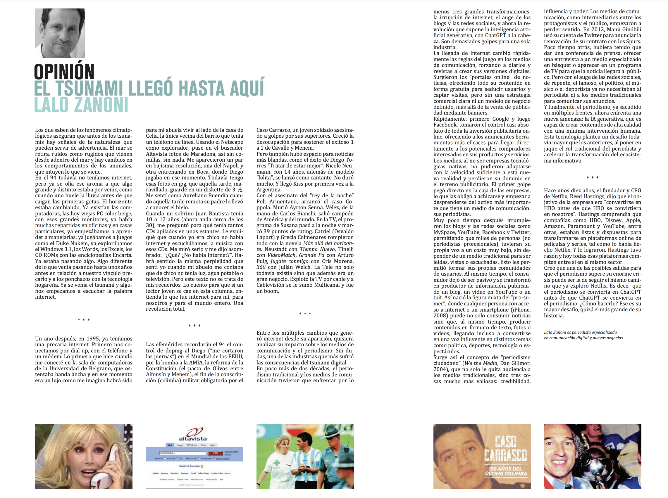 Entre todos los múltiples cambios que generó internet desde su aparición, quisiera analizar su impacto sobre los medios de comunicación y el periodismo. Sin dudas, una de las industrias que más sufrió las consecuencias del tsunami digital.